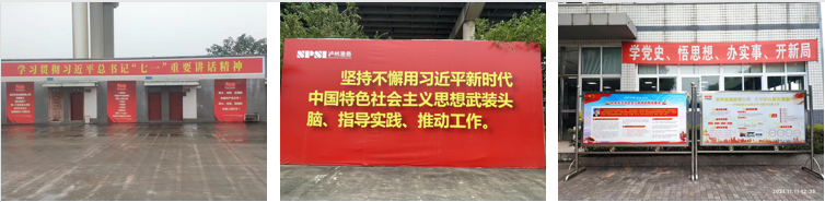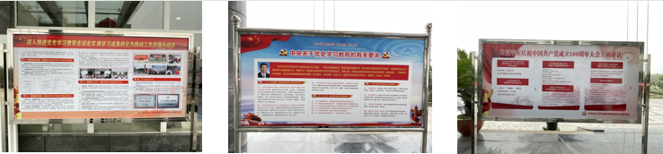 ? ? ? 多點位學(xué)習(xí)習(xí)近平總書記七一重要講話精神,突出習(xí)近平總書記在黨史學(xué)習(xí)教育動員大會上的講話內(nèi)容,懸掛宣傳橫幅12幅,陳設(shè)宣傳展板7塊,利用大廳大型電子顯示屏播放黨史學(xué)習(xí)教育內(nèi)容,引導(dǎo)黨員干部和群眾感悟思想偉力、強化理論武裝,增強政治自覺。