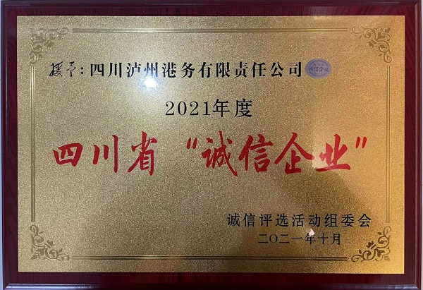 ? ? ? ?誠實守信,榜樣先行。近期,四川省發(fā)展改革委等25部門聯(lián)合發(fā)布2021年度 “誠信企業(yè)”評選結(jié)果,瀘州港務(wù)公司成功獲評2021年度“四川省誠信企業(yè)”。