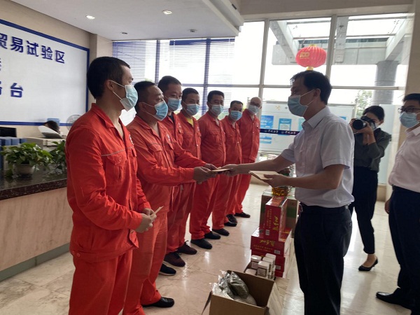 ? ? ? 為做好安全生產(chǎn)和夏季防暑降溫工作,保證職工安全度夏,8月13日,省港投集團(tuán)公司副總經(jīng)理阮昌益一行到瀘州港務(wù)公司開(kāi)展夏季“送清涼”慰問(wèn)活動(dòng),及時(shí)為一線職工送上集團(tuán)的關(guān)懷。