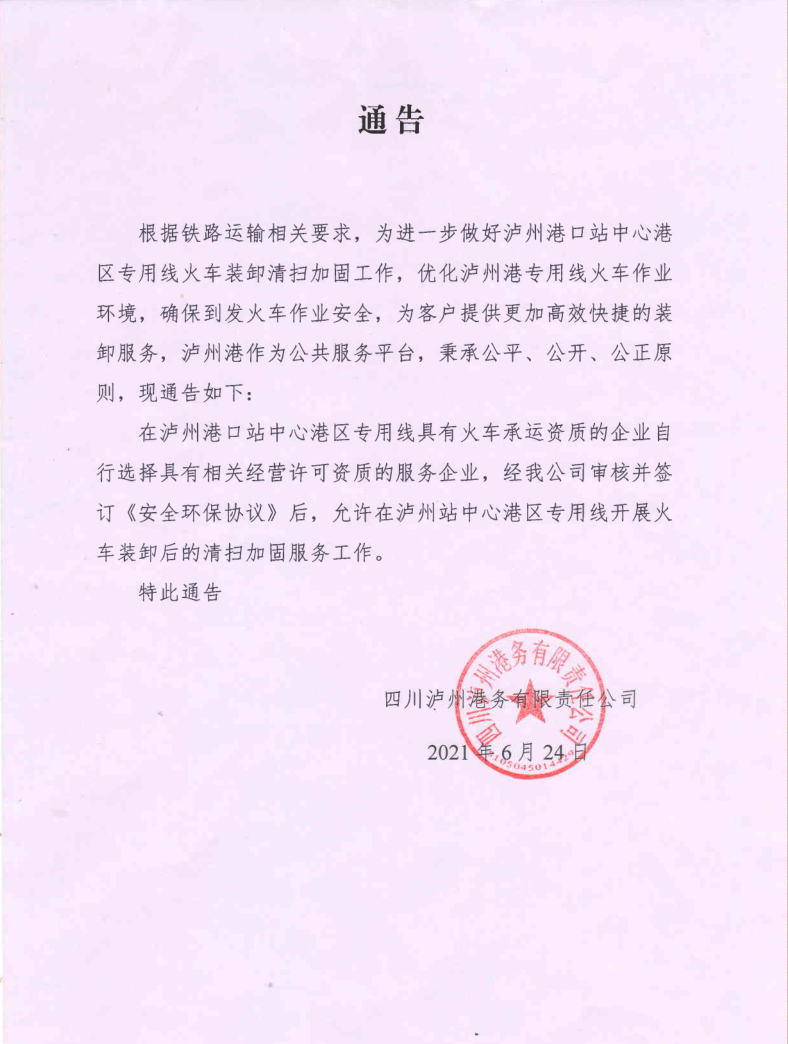 關(guān)于火車清掃加固作業(yè)服務(wù)的通告